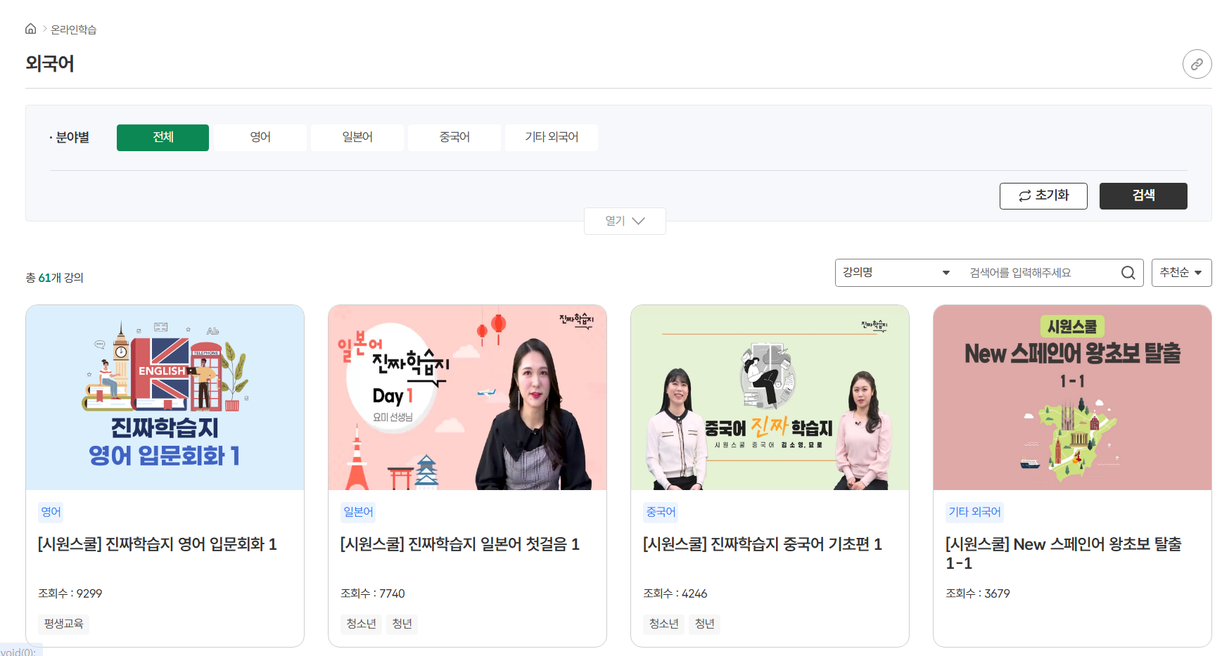 각 강좌별로 조회수도 확인할 수 있어, 어떤 강좌가 인기 있는지 확인할 수 있어 좋습니다.